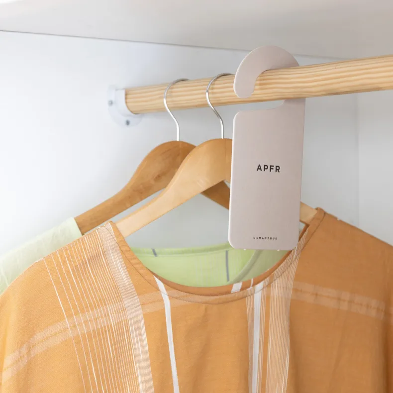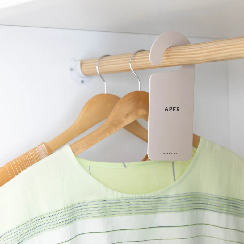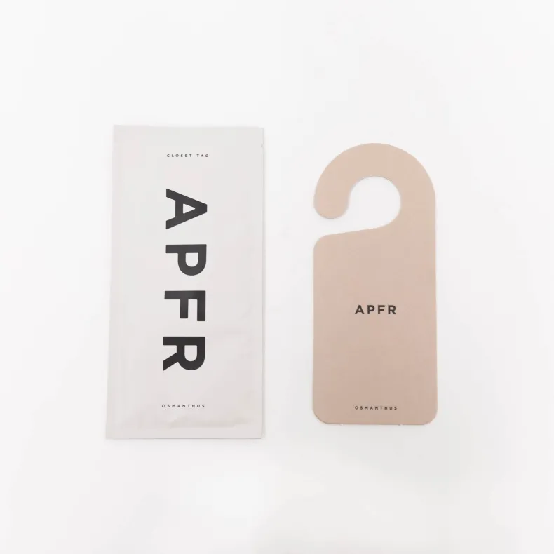 Keep your clothes smelling luxurious with APFR’s paper closet tags. Infused with oakmoss and amber scents, simply hang a tag in your wardrobe to diffuse the surrounding space with a light woody and musk fragrance with hints of sage and grapefruit.