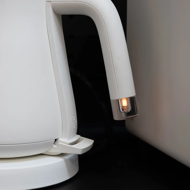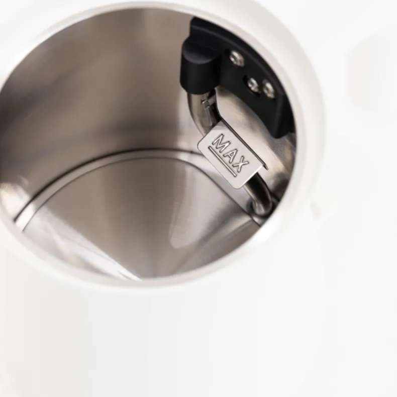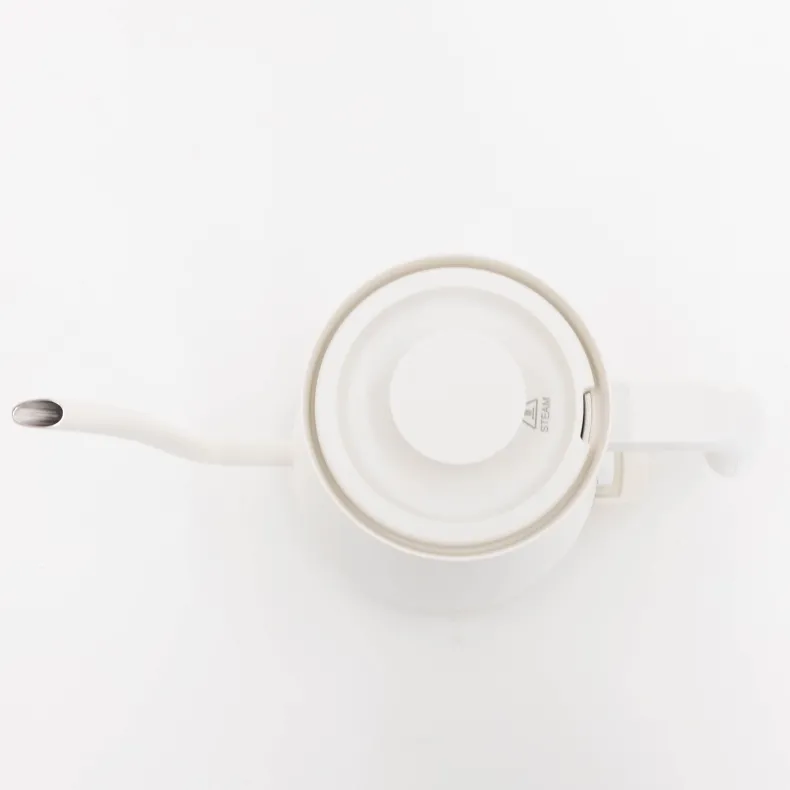 A compact and lightweight electric kettle that boils water within a quick few minutes. With elegant lines for a calming kitchen aesthetic, its long, subtly curved spout provides easy speed and direction control for everything from specialty pour-overs to everyday tea ceremonies. A delicate neon light on the handle quietly alerts you when the water is ready. Boils enough water for two cups of tea or coffee.