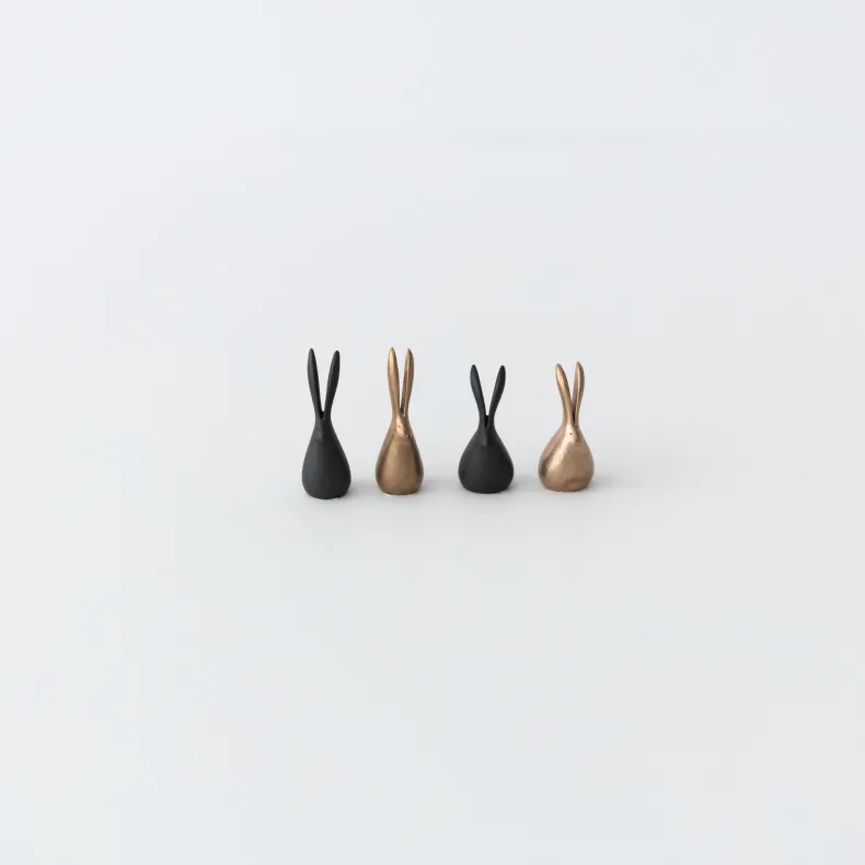 Whimsical, miniature bronze statues in the shapes of rabbits. Each figurine is individually cast by hand, similar to how jewelry is made. Their material weight is counter balanced by their small silhouette, you’ll be charmed by its appearance for years to come.