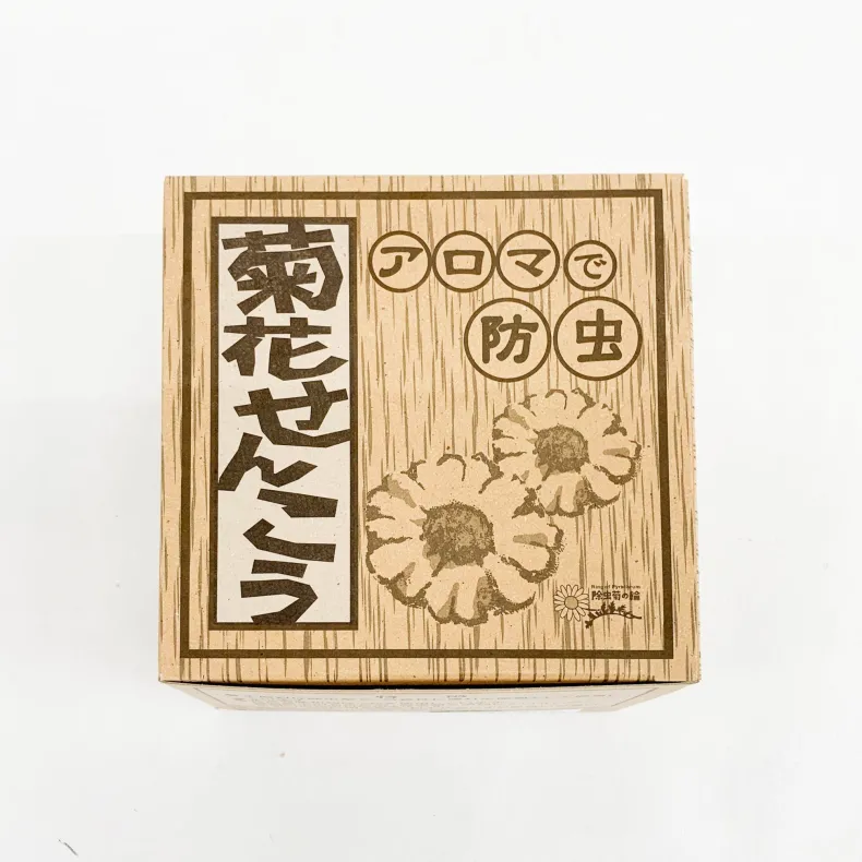 Kikka Senkou(Chrysanthemum Mosquito Coil Incense). Made from 100% natural ingredients, this round coil incense has the earthy aroma of chrysanthemum and burns for six hours to naturally repel insects. Suitable for outdoor use, each box contains 30 coils and comes with a small tin incense holder to suspend the coil slight above the ground. We prefer to place this holder on a ceramic dish to catch any falling ash, making it easier to dispose later when we need to clean up.