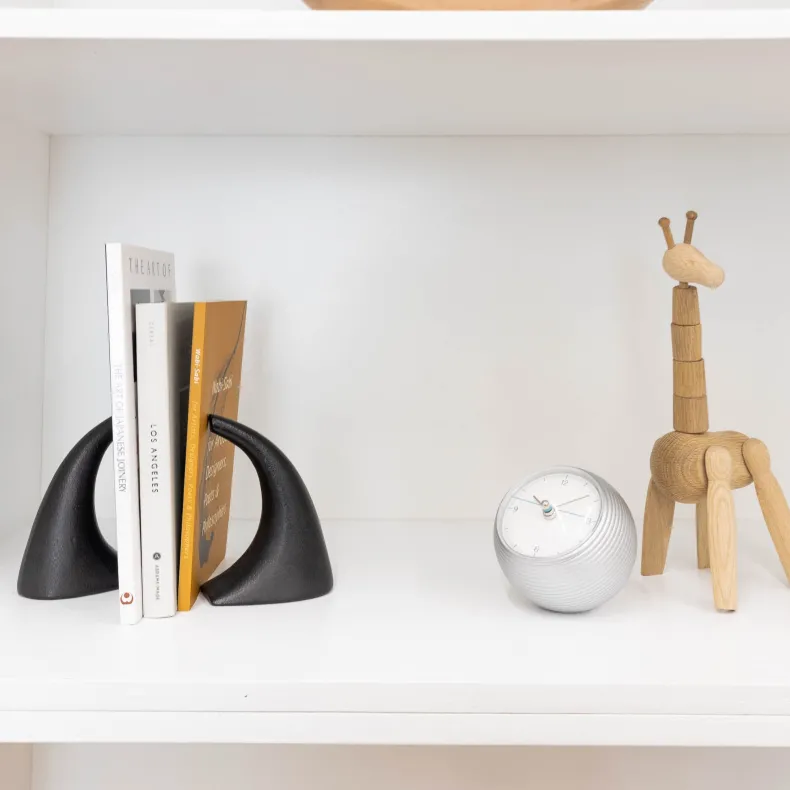 Originally designed by Takenobu Igarashi in 1987, the Earth Clock provided a creative twist on the classic rectangular table clock. The rounded shape references the Earth, the grooves on the clock’s body represent the oceans, while the clear dome and dial symbolize the land. The blue second hand extends to both sides, adding a fun accent to the design. The sweep second hand means that the mechanism moves in a smooth fluid motion. Manufactured using a traditional sand-casting technique in Takaoka city, Toyama, the surface shape cannot be repaired once it has been cast, so there is a high-level of skill applied to make each piece, with a skilled craftsmen cutting each sphere on a lathe. Perfect as a table clock for the bedroom or a small studio, and suitable for all styles of interior.