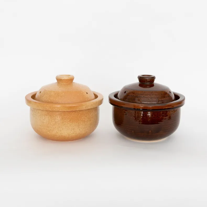 Founded in 2020, Homeland is an all-female design collective working with traditional manufacturers around Japan to create timeless yet modern wares for the home. Their donabe collection is made in collaboration with Matsusho, an 8th-generation pottery kiln in Shigaraki-cho. A major center of ceramic production since the 12th century, Shigaraki ware is made from the local clay dug from ancient Lake Biwa, which is particularly suited to making large, flame-resistant stoneware.