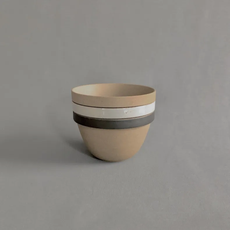 HASAMI PORCELAIN is a stackable, modular ceramics line made in Hasami, Japan, but designed in Venice Beach, California by Tortoise General Store owner, Taku Shinomoto in 2010. HASAMI PORCELAIN’s deep round bowl is made from a proprietary mixture of crushed stone from Amakusa that has created some of the most beautiful pottery in the world, as pieces cherished for their individuality. This bowl is stackable with other 5.5/8″ diameter pieces.