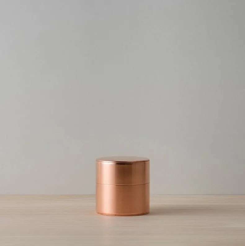 Never wash the tea canister as water or other cleaning products, as it may cause the surface to tarnish unevenly. Do not put the canister in freezer or refrigerator as it is susceptible to moisture. All canisters will undergo subtle changes in color tone over time: Copper (2-3 months), Brass (1-2 years), Tin (3-5 years). Like fine wine, chazutsus appreciate with age.