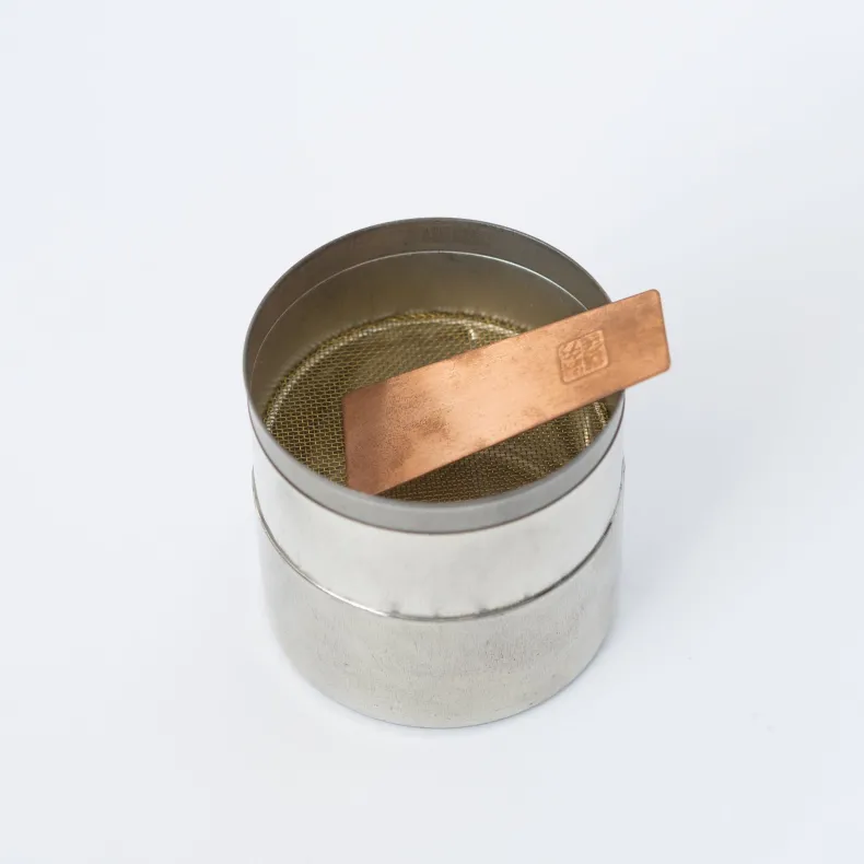 Tin container for sieve – Height 2.56 inches × Diameter 2.56 inches