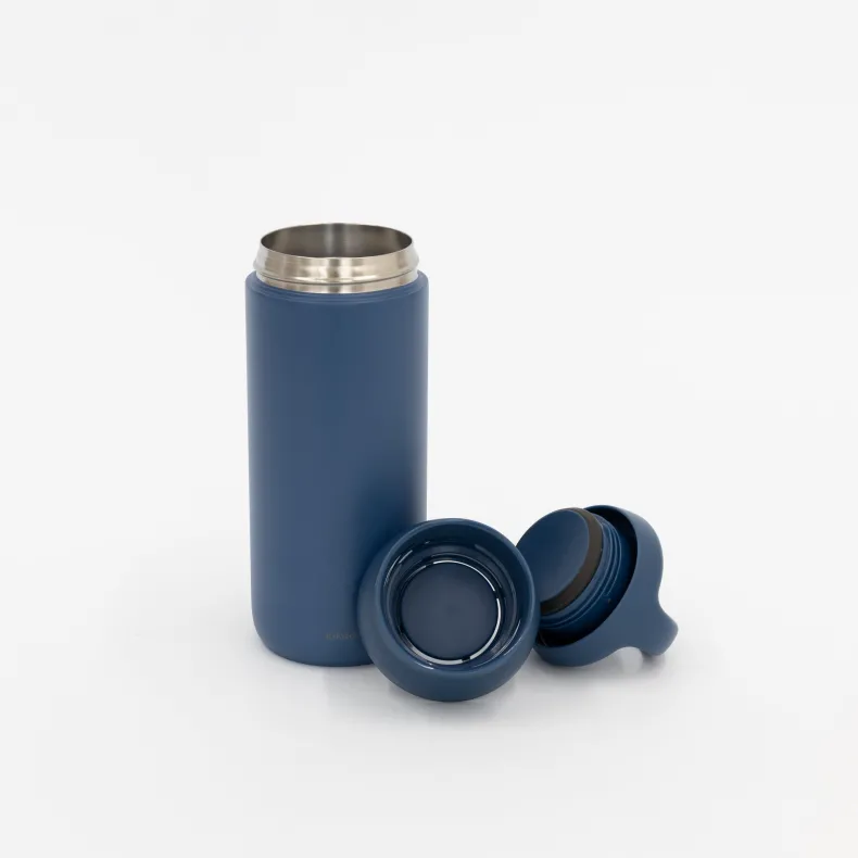 The Kinto Day Off Tumbler is vacuum insulated for great heat and cold retention. Beverages will remain hot or cold for up to six hours. The smooth lid has a rounded handle for easy carrying and the cap is structurally designed to stop ice cubes and hot drinks from coming out unexpectedly, so you can drink comfortably until the last sip. For maximum insulation efficiency, preheat or precool the tumbler prior to use by filling in a bit of hot/cold water for 1-2 mins.