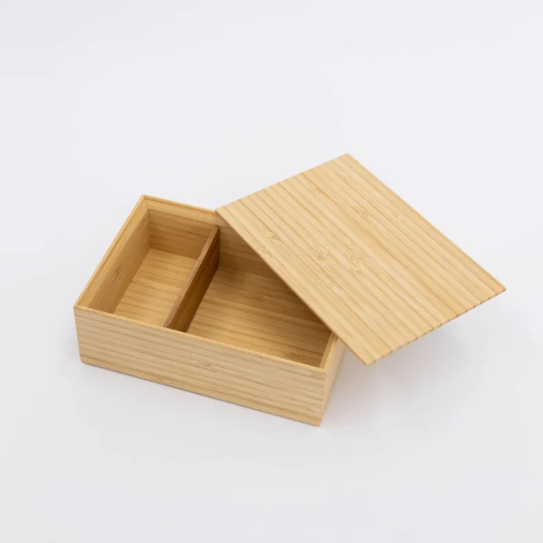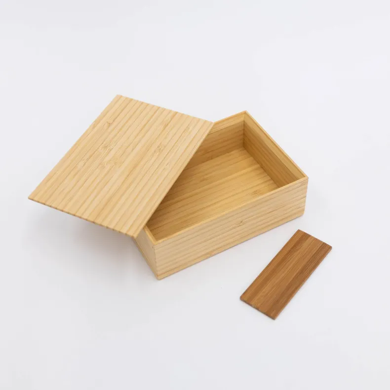 Present your dishes framed in this simple and minimal bamboo lunchbox. This compact and elegant lunch box by Kosuga is the perfect addition to bring to your picnics or even lunch. Comes with one divider to separate your dishes and an elastic band to secure the lid.