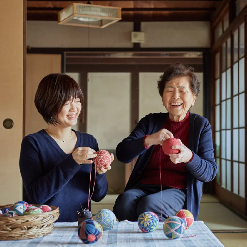 Mari means ‘ball’ in Japanese. These traditional folk objects were first created in 17th century AD primarily for the Japanese upper class and aristocracy. Today, there are only a few craftspeople that continue to make Mari Balls using traditional techniques, threatening this ancient craft. Our Mari Balls are made in Okayama, Japan by a small group of women, all in their 60s-80s. They strive to carry on this traditional craft, imparting it to the next generation.