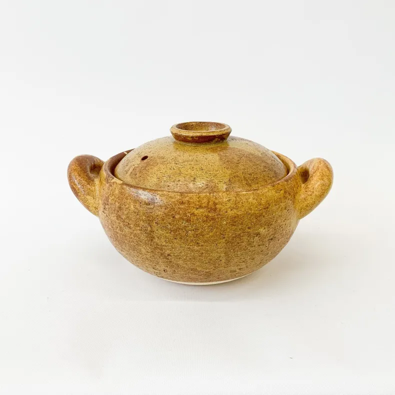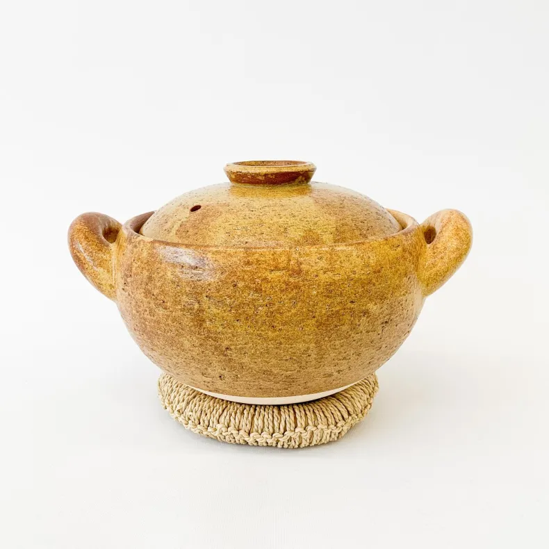 Made from a porous prehistoric clay sourced from Japan’s largest and oldest lake, Lake Biwa. The clay contains thousands of microscopic prehistoric fossils that are then baked into the clay when the pot is fired inside the kiln, creating tiny microscopic pores inside the clay pot, which act as pockets that captures and retains heat better than other cooking vessels.