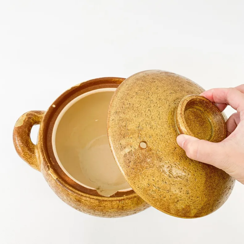 Each donabe is made by hand with care and takes about 2 weeks to produce. Due to its hand-made nature and organic material, each pot will have some variation, which adds to the beautiful uniqueness of each piece. As you use the pot, you will see the bottom of the pot darken, and the color inside the pot slowly stain and grow character. This is part of the beautiful and natural aging process.