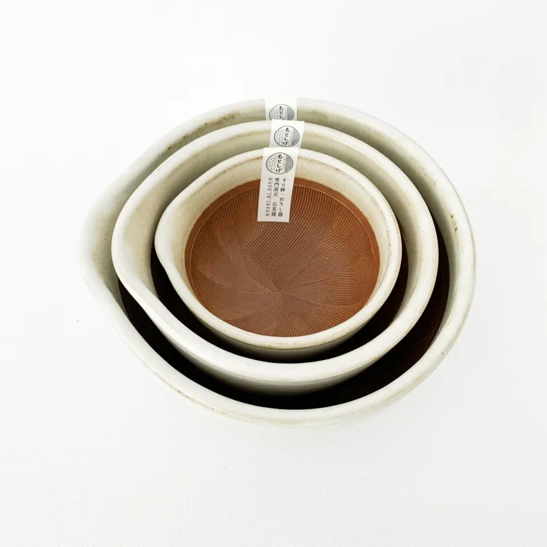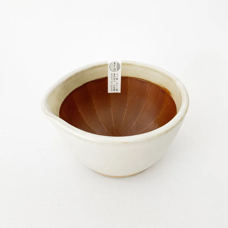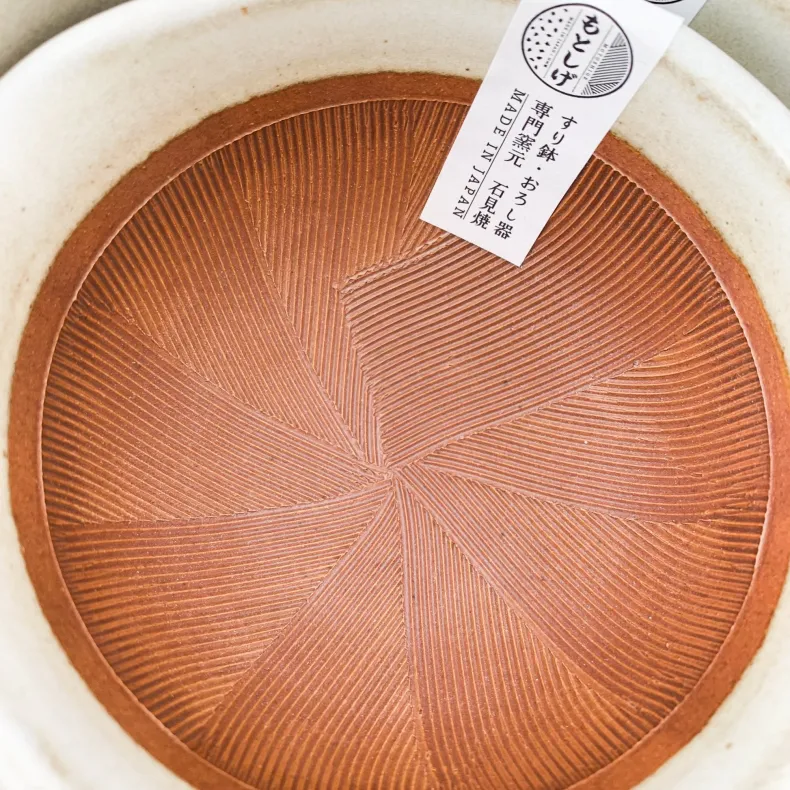 Motoshige, a manufacturer of Japanese mortars and graters, was established in 1925 in the tradition of Iwami pottery. The region in which they are made is known for having a special type of clay whose properties include excellent durability, low water absorbency and resistance to acids, salt, and alkalis.