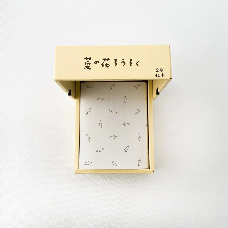 Responsible for their yellow hue and delicate scent, these traditional Japanese candles are made with oil from Nanohana flowers – a small, yellow blossom found on Noto Peninsula. One box includes 40 non-toxic Nanohana candles, and each one has a burn time of 55 minutes. Their 16th century candle design with a hollow center results in bright, clean, and long flamesusing theupward flow of oxygen from the base. Be it during yoga, meditation, or a shared meal with dear ones, these candles facilitate the creation of a truly special ambiance.