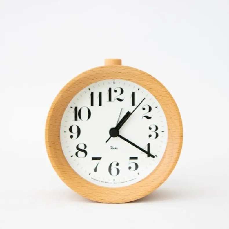 This simple alarm clock was designed by the pioneer of modern Japanese design, Riki Watanabe. Paired with a tiny night light and a powerful alarm sound, this clock will wake you up and keep you on track throughout your day. The minimalist wooden frame with its simple and modern face gives this clock an elegant appearance fitting many different interiors. The clock has a sweeping second hand and there is no ticking sound.