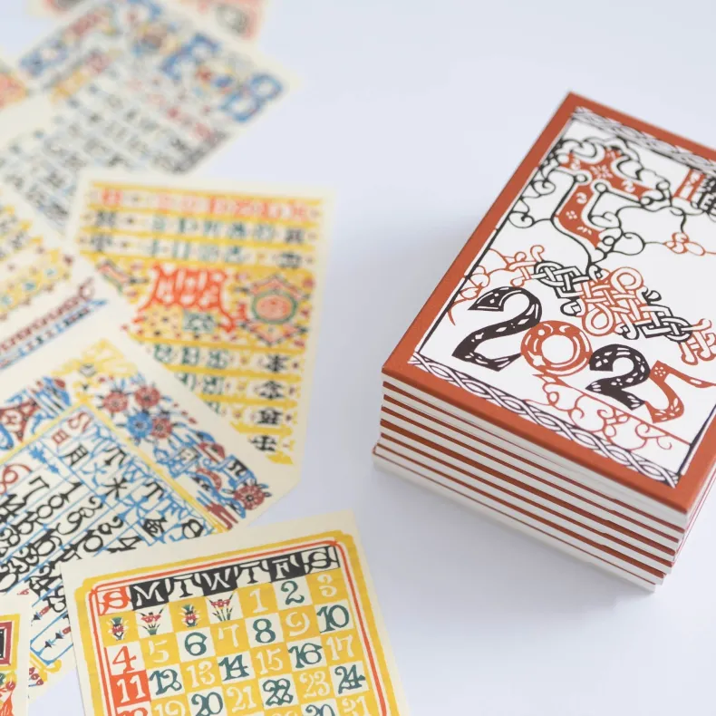 Japanese desk calendar and reproduction of the classic works of renowned stencil artist Keisuke Serizawa. A wonderful gift for the paper connoisseur or fans of Japanese mingei (folk art), these popular calendars are a limited item that sells out quickly every year. With each passing month, see the vivid expression of the seasons on each page as you rotate the calendar’s pages inside its plastic stand. Give yourself, friends and family this special symbol of the new year to celebrate 2025!