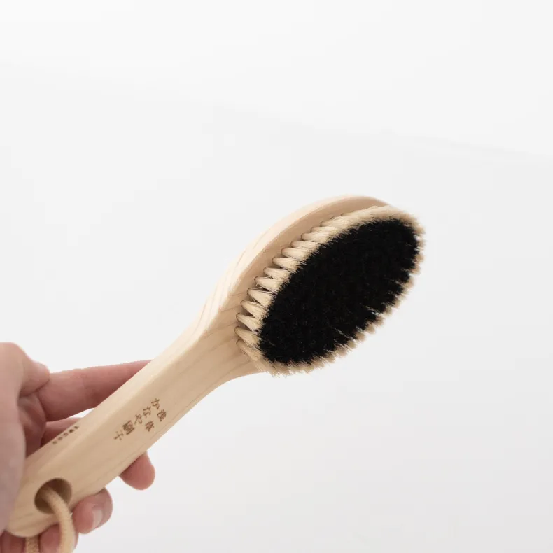 Kanaya’s short handled body brush features soft horse hair bristles that are gentle on the skin. Exfoliate by dry brushing or while bathing.