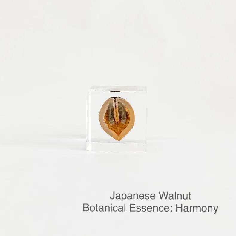 The concept behind Sola Cubes marries two traditional Japanese values: a reverence for nature and a philosophical appreciation of small, humble elements that are easily overlooked. Each cube is cast from crystal clear acrylic resin and then hand polished, right down to its crisp, micro-radiused edge. Considerable craftsmanship is required to make the cubes, ensuring that no air bubbles are present. Preserved inside is a single leaf, seed, or flower—individually or in groups, the cubes create an opportunity for a meditative moment on the beauty and power of the natural world. Made in Kyoto, Japan by Usagi No Nedoko.