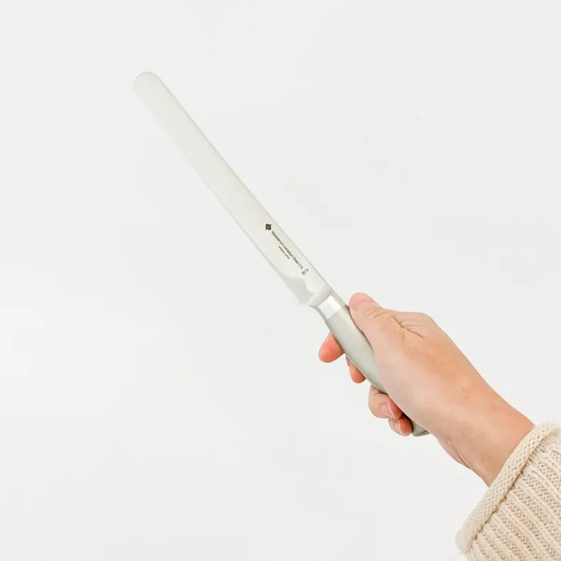 Timeless stainless steel bread knife with long lasting durability. Designed by Japan’s most influential post-war industrial designer, Sori Yanagi, who is most well known for creating timeless design and user-friendly tools in the kitchen and home. At first glance, the simplicity of his designs can sometimes seem unremarkable, but with use, can be felt in big ways by chefs and at-home cooks alike.