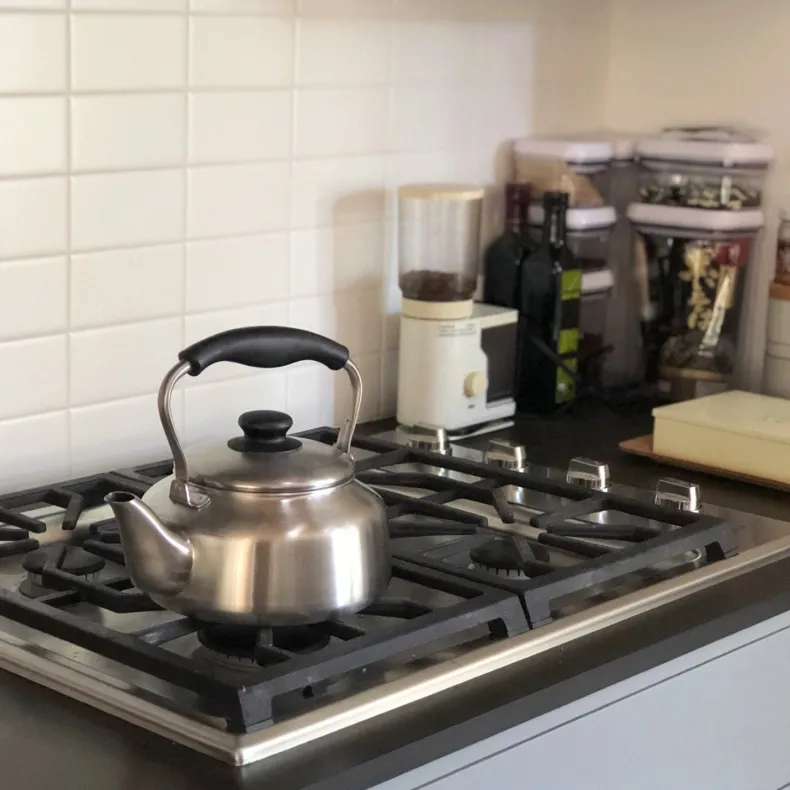 – The kettle does not have a whistle, but boils water rapidly, so do not leave it unattended. You can tell when the water is boiling by observing the steam that comes out of the spout and airholes at the top of the kettle lid. Turn off the stove when the water reaches its boiling point. Do not leave the kettle boiling for a long time as it may cause damage.