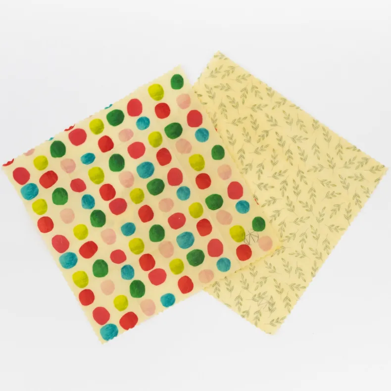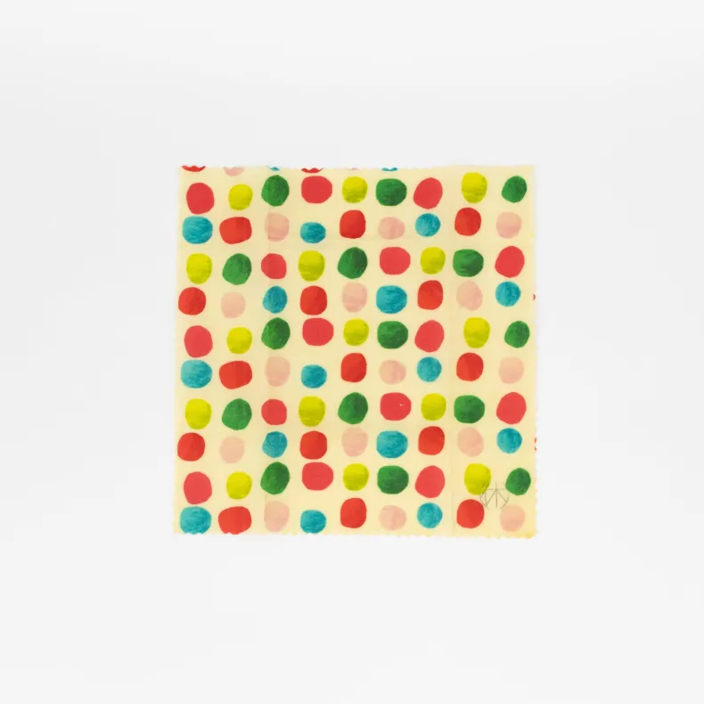 Meant to be used as an eco-friendly alternative to plastic wrap! Use this 100% cotton, bee’s wax coated, sticky wrap to cover the tops of your bowls to keep your items fresh in the fridge, or to keep things from flying in at the dining table. Wrap your lunches, breads, fruit and cheese with them instead of reaching for saran wrap. These beautiful wraps add a bit of character to your kitchen, and because they are washable, they are reusable for up to 1 year!