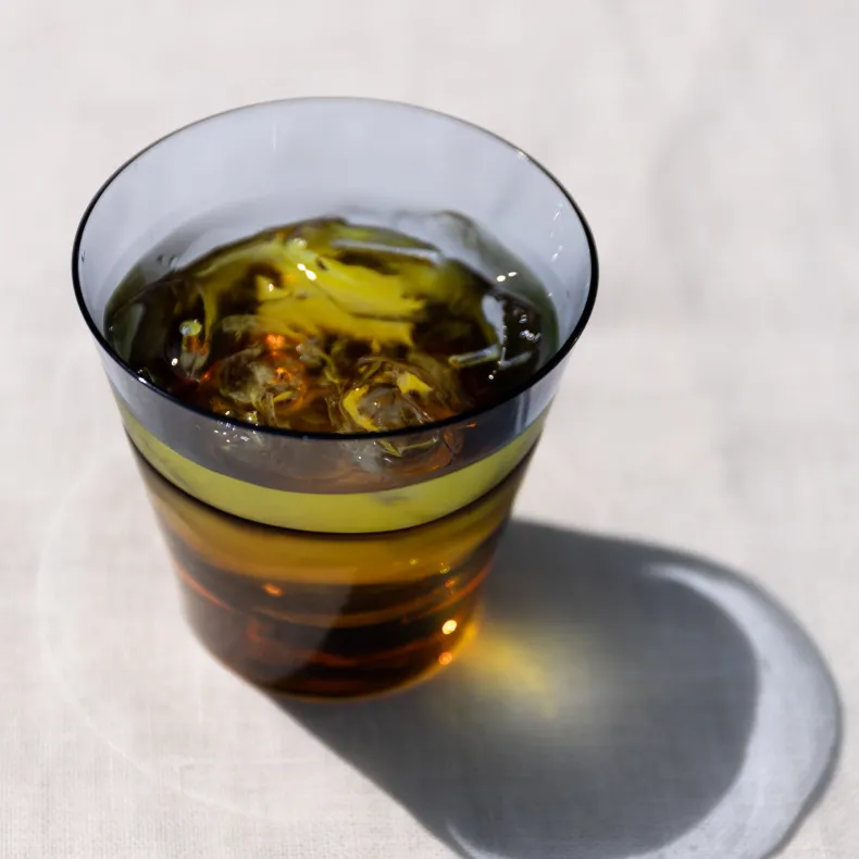 Colorful glass tumbler and old fashioned glass. Each is entirely mouth-blown by skilled Japanese glassblowers, and will vary slightly in shape and tone.