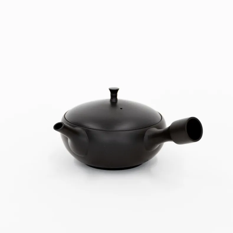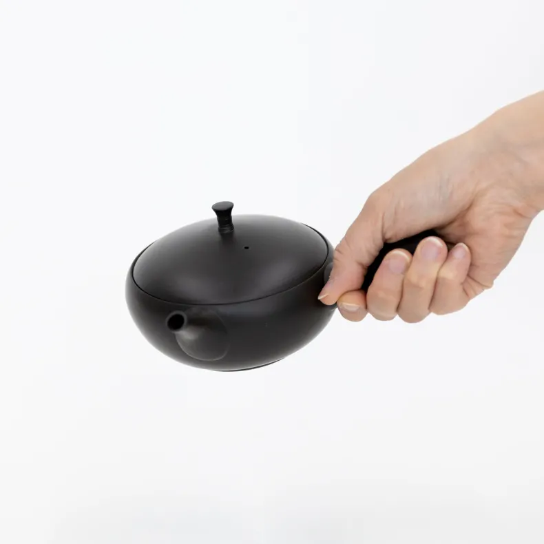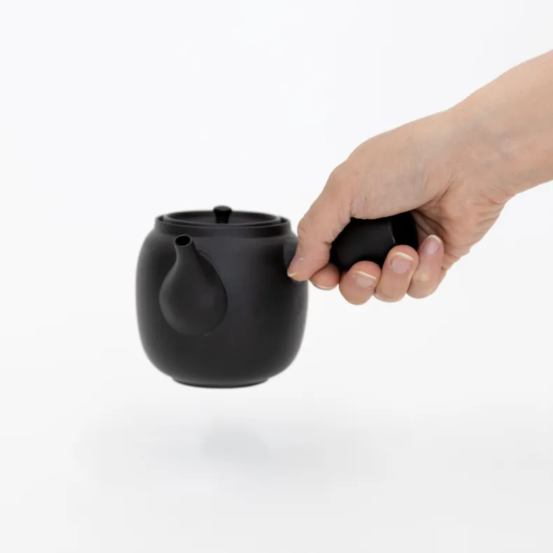 Designed by Masahiro Oji. Born in Hiroshima Prefecture in 1974, Oji’s professional career spans from architecture to graphic design firm to ultimately his calling as a handicraft designer. Oji’s designs are characterized by a deep desire to draw out the singular purpose of each functional object, and his globally recognized work as a product designer includes the celebrated brassware line, ‘Futagami’. Each teapot is artfullycrafted by the skilled potter, Tatsuo Umehara,and undergoes an oxidization process that targets the iron in the clay during its final firing stage. This meticulous technique induces a transformation in the iron compound within the clay, resulting in a striking and enduring black hue that imparts a lustrous finish to the creation.