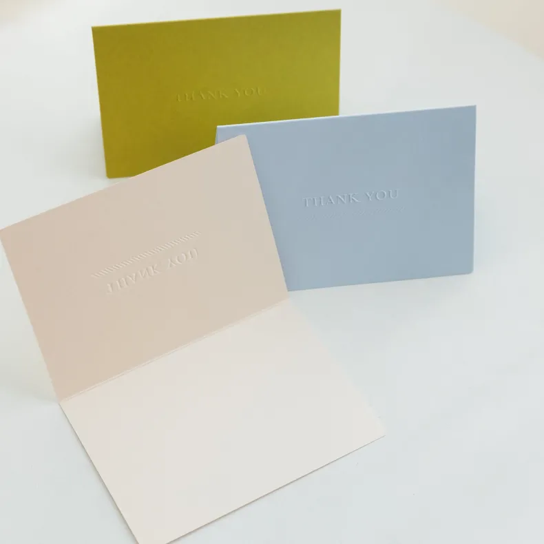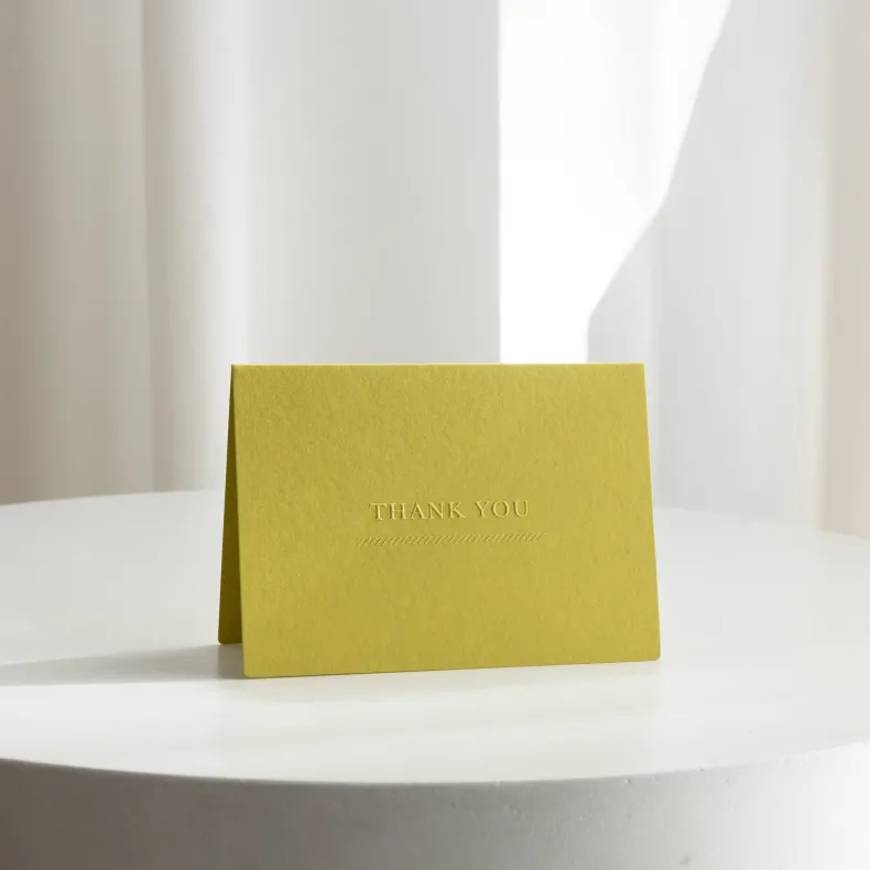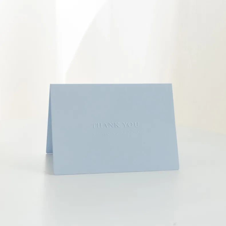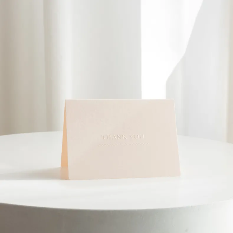 Show appreciation to your loved ones with these beautiful thank you cards made by TAKEO Papers. The minimalistic design and fine paper harmonize to leave a casual yet chic impression. Features embossed lettering that adds a fine touch to the card and each one comes with a charming pearl white envelope with a faint glimmer.