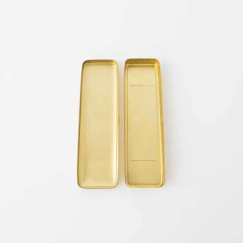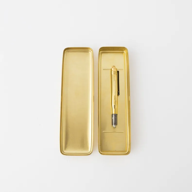This single tray pen case is made from solid brass, providing a sturdy place to hold your writing tools. The brass itself will develop a vintage look and finish over time, leaving you with a unique case, reminiscent of an antique.