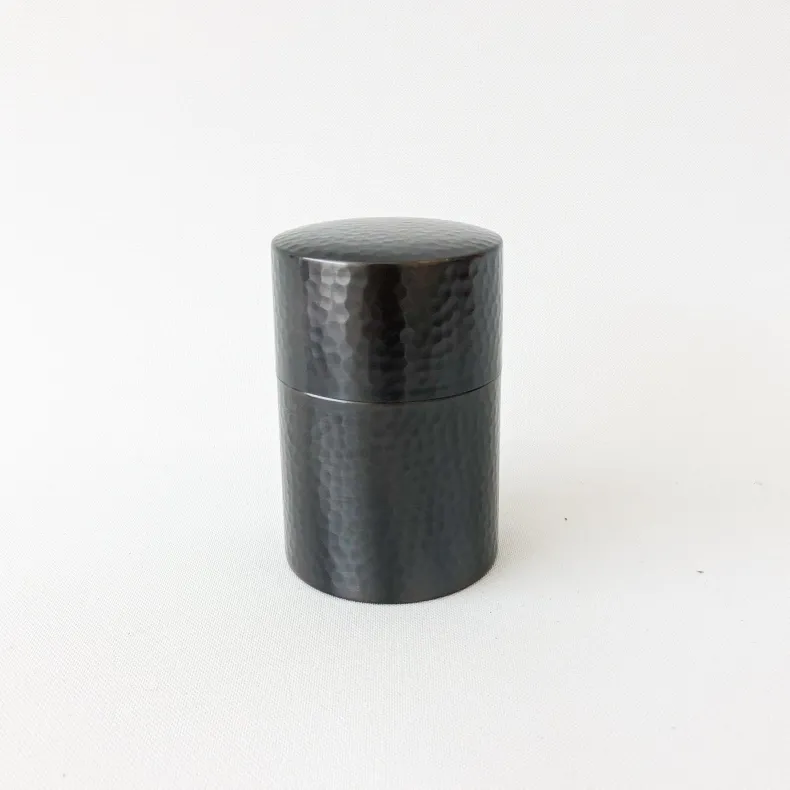 A very traditional Japanese kitchen item, this is a tea canister or ‘chazutsu’ made from hammered copper. The canister includes a traditional copper scoop so that you can scoop your loose leaf tea into your favorite teapot. The subdued color of the canister, paired with its ripple like hammered surface, reminds you of tranquil and calm waters.
