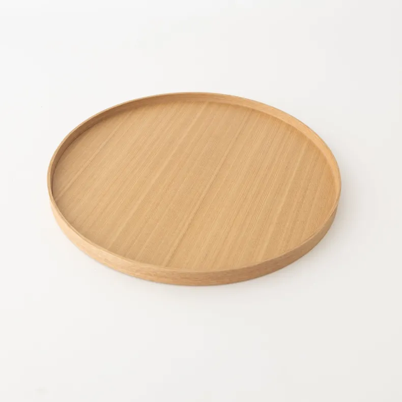 Presented in ash wood, these featherlight round trays are ideal forservingbeverages, tea, or coffee. They also excel at organizing items on a dresser or providing a stable surface on ottomans or sofas. Their innate simplicity renders them suitable for any interior setting for a wide variety of occasions.