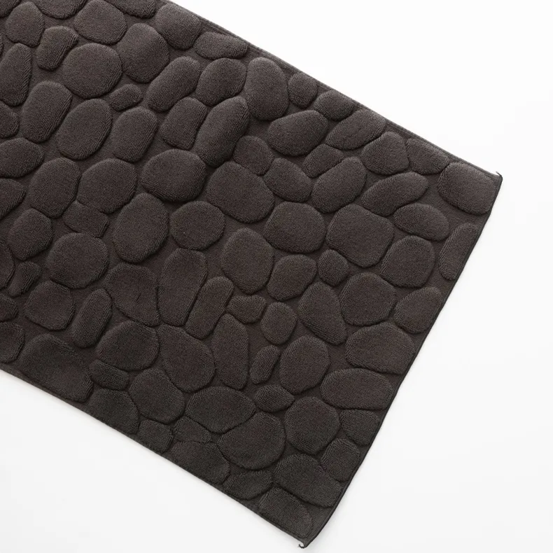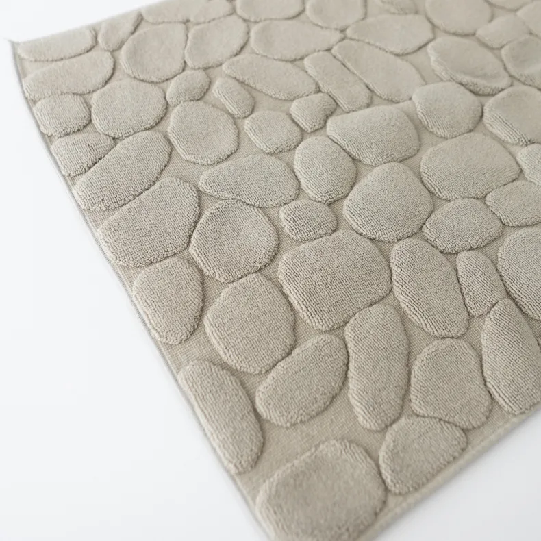 Ishikoro pebble stone bath mat is a 100% cotton bath mat that was inspired by the river beds in Japan. Designed from an image of pebbles stones in the rivers, this very absorbent bath mat is great to step on when getting out of your shower or bath.