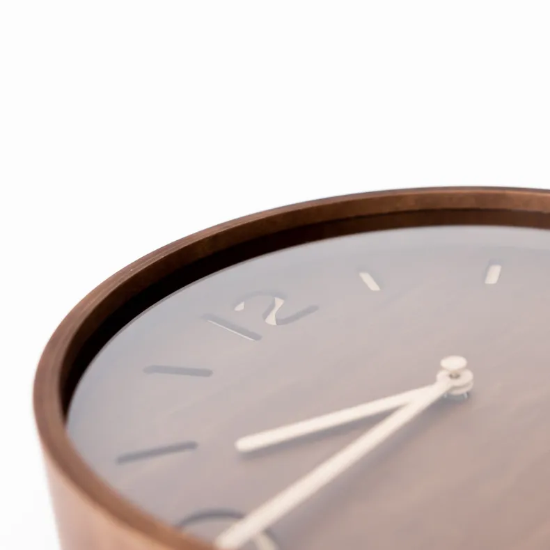 Conceived by Yuichi Nara, the Thomson wall clock from Lemnos is a manifestation of woodwork, entirely sculpted from timber and characterized by its gracefully curved plywood frame. Numerals and minute indicators are meticulously carved into the rich, dark surface of the plywood, while the pale layer beneath harmonizes seamlessly with the clock’s hands. The clock does not have a second hand and there is no ticking sound. Recognized for its design excellence, the Thomson was bestowed with the Good Design Award in 2004.