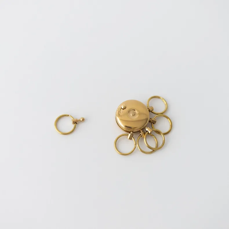 Brass key holder with 6 tiny rings resembling a charming octopus! Slide thelatchfound atthe top half of the key holder to open a small doorway that makes it easy to pull out each individualring in a flash. Perfect when you needto hand offa key to a friend, dog walker, or valet. The key holder’sgold color finish makes it an eye-catching accessory with a little bit of flash.