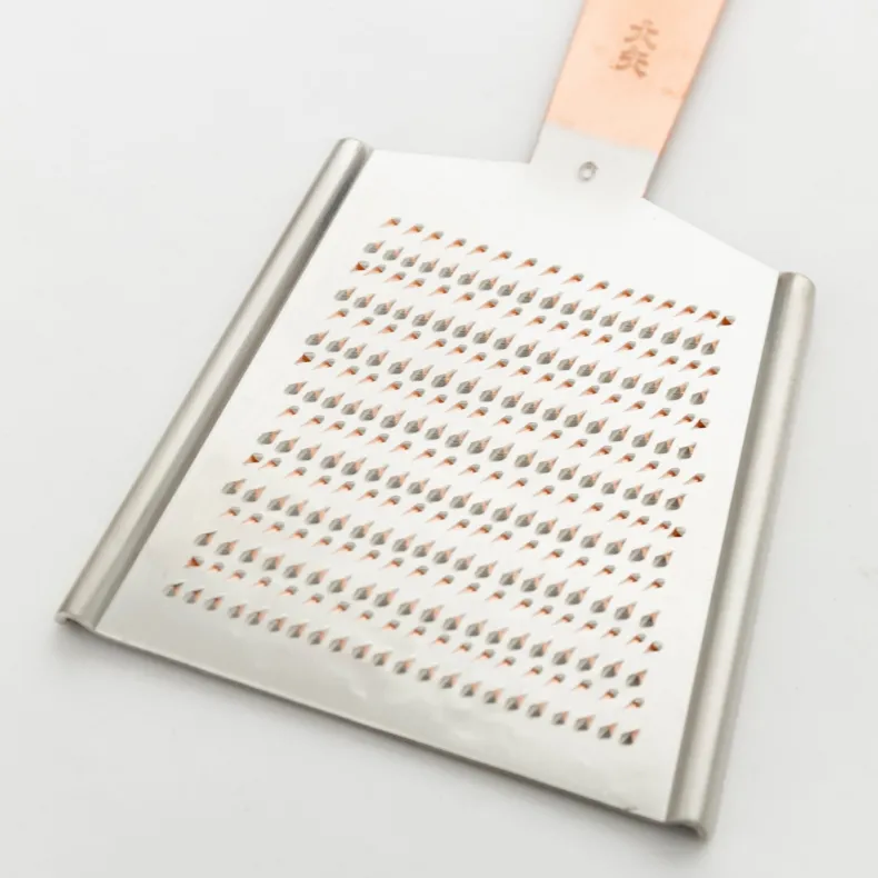 This professional-gradepaddle grater is ideal for bulb and root vegetables such as onions, garlic and wasabi as well as citrus rinds. Using a technique dating back to the Edo period, each tooth is hand-carved out and pointed upward using ataganeand iron hammer resulting ina sharper, finer grate that tends to retain more moisture and flavor than your typical grater.