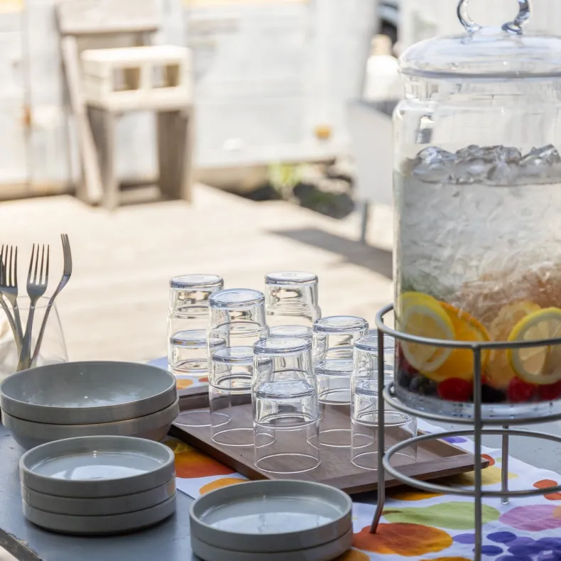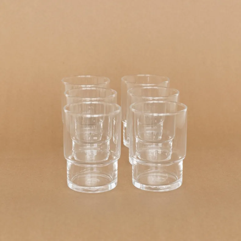 Stylish and durable glassware designed and manufactured by Japan’s leading glass company, Toyo-Sasaki. This set of 6 is stackable for elegant and efficient table displays, as well as easy storage when not in use. Toyo-Sasaki’s proprietary Hard Strong (HS) technology offirst subjecting their glass to intense heat then rapidly cooling it, imbues the glassware with exceptional fortitude,making them perfect for everyday use.